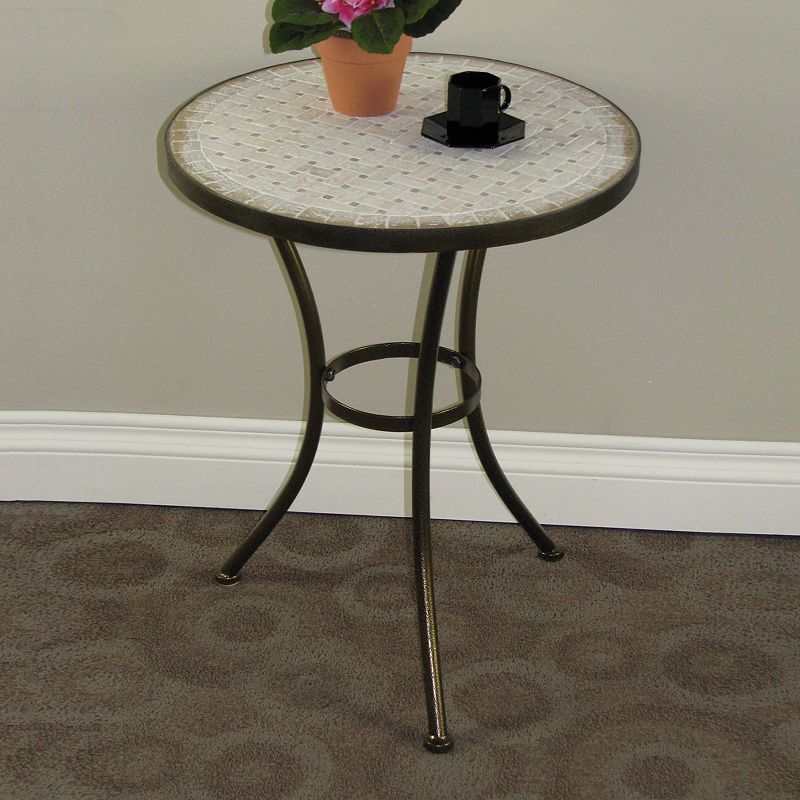 Travertine Round End Table, Brown Information